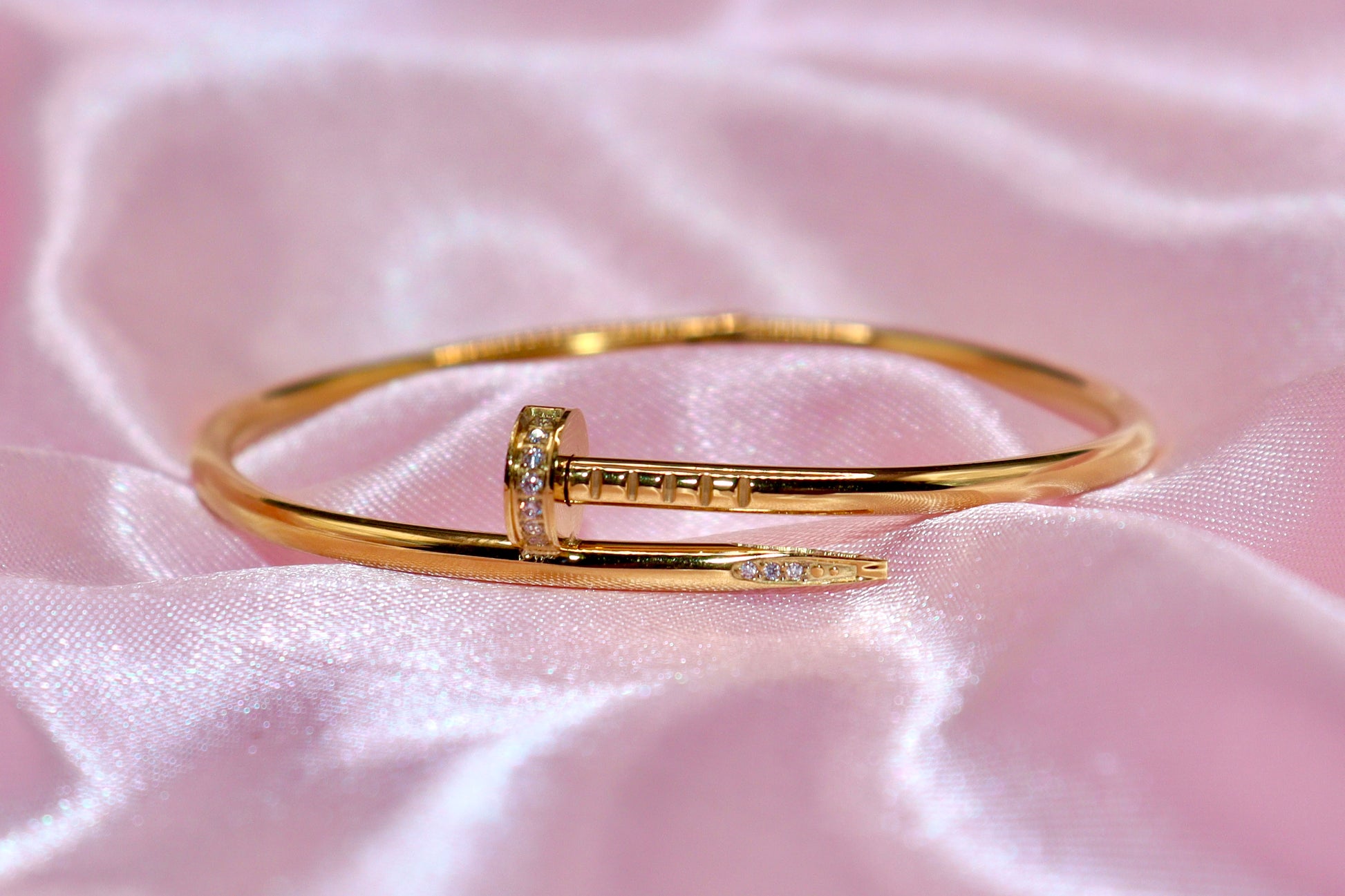 Bold and modern, this stainless steel bracelet in gold is styled like a wrapped nail for a contemporary edge. A statement piece built for everyday wear, complete with a 3-year guarantee.