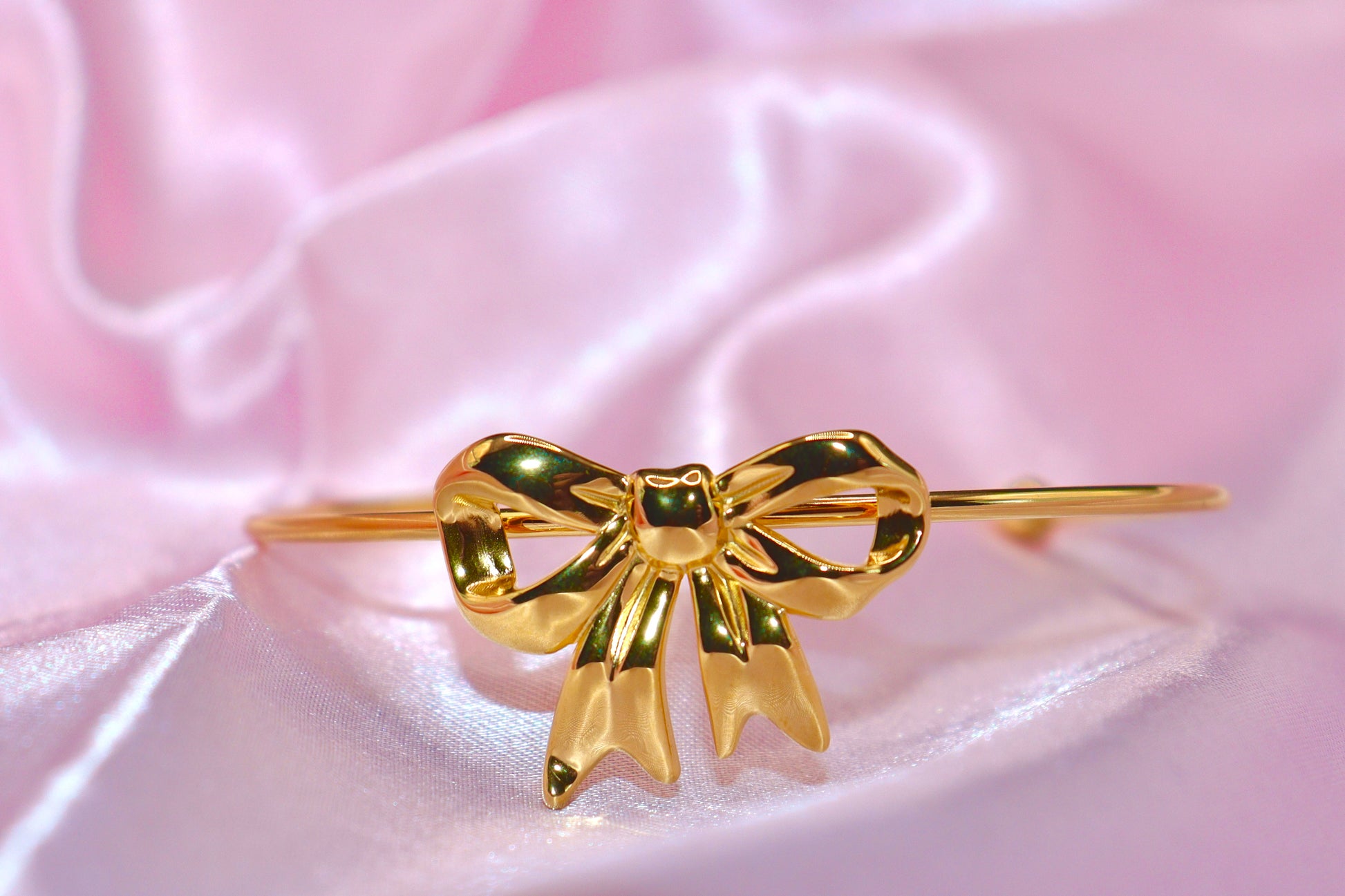 A bold and beautiful chunky bow sits atop this golden bangle. A fashionable statement piece, crafted from stainless steel and backed by a 3-year guarantee.