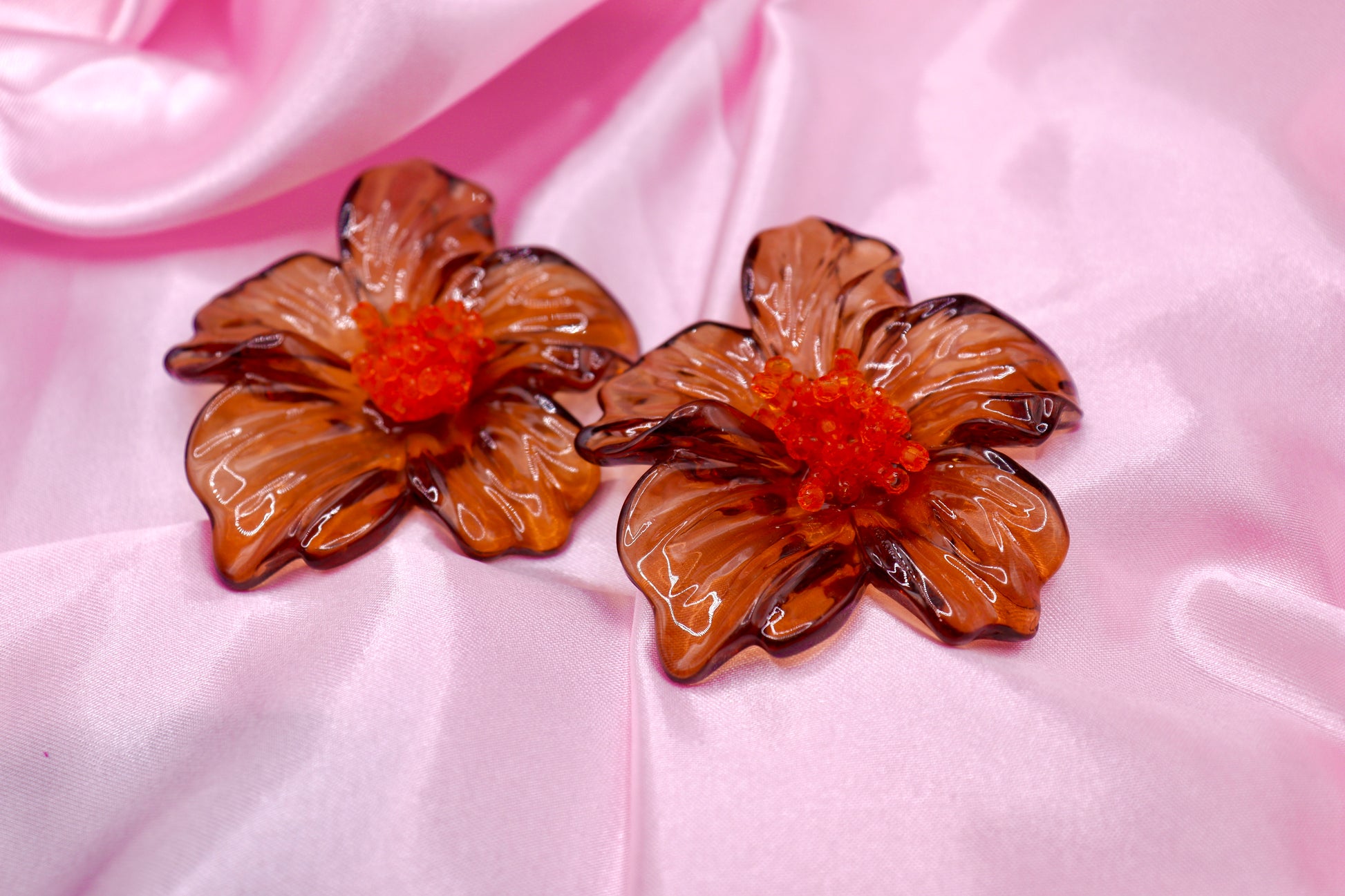Acrylic statement earrings in earthy tones — brown, yellow, hot pink, green, or purple. Lightweight, bold, and hypoallergenic, with stainless steel posts and a 3-year guarantee.