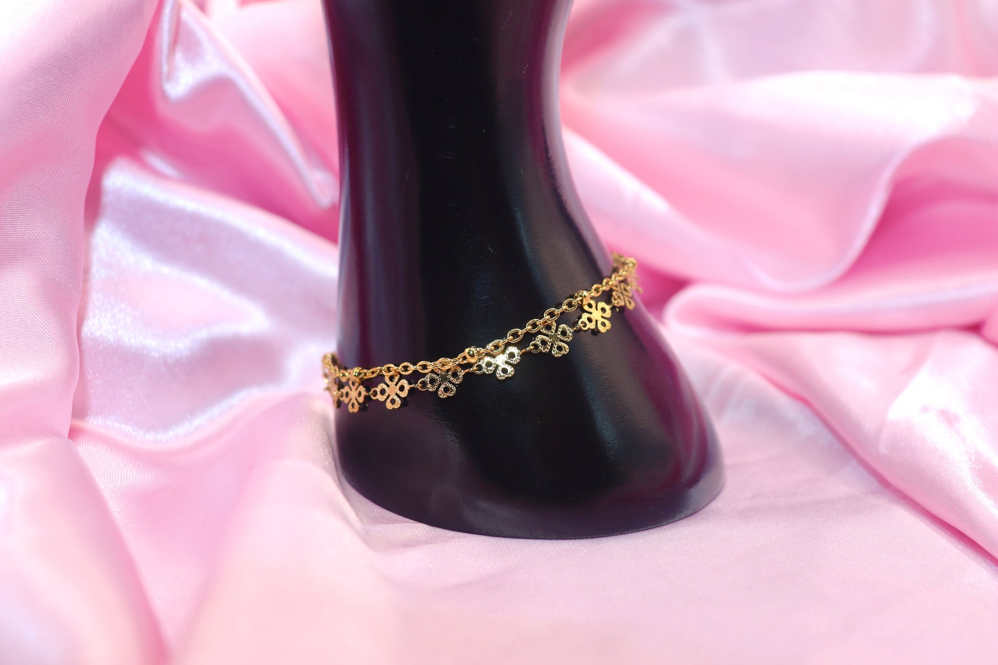 A layered design of stainless steel gold with charming floral motifs. The two-layer construction adds depth, while the 3-year guarantee ensures long-lasting wear.